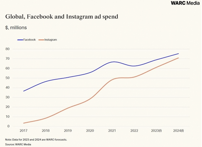 사실 광고는 메타에 있어 매우 중요한 매출을 차지하고 있습니다. 특히 인스타그램이 페이스북을 추월해 압도적인 성장 흐름, 리텐션을 보이다 보니 메타 역시 인스타그램에서 좀 더 수익을 쥐어짜고 싶을 겁니다.