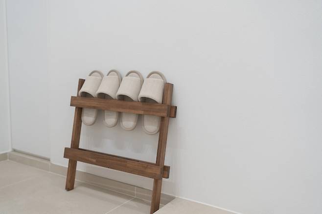 현관에서 쓰고 있는 실내화 걸이입니다. 심플하면서도 우드가 주는 포근함이 느껴지는 제품이에요. 너무 마음에 들어서 친한 친구 집들이 갈 때 선물해주기도 했어요! 원래 실내화를 신지 않았었는데, 마루가 딱딱해서 실내화를 신기 시작했답니다(ㅠㅠ)