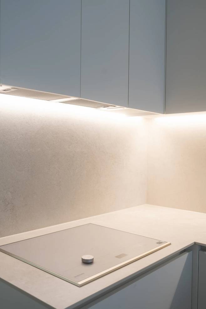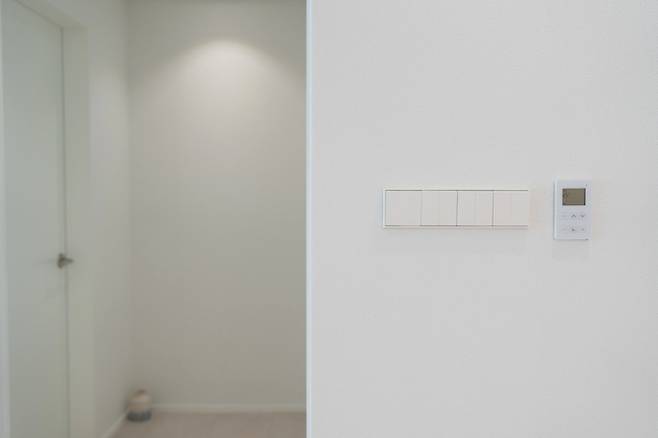 조명이 필요한 상황에 따라 스위치를 나눠서 계획했어요. 이 시공을 위해서 겸사겸사 가벽을 만들었는데, 정말 만족해요! 융스위치 매트화이트 색상입니다:)