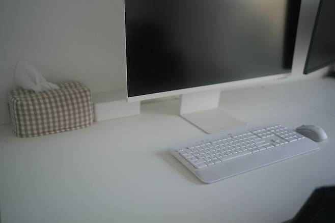 이 공간에서 매일 밤 영상 편집과 포스팅 작성을 한답니다. 게임을 좋아하는 남편은 아주 기다란 게이밍 모니터를 사용하고 있어요ㅎㅎ