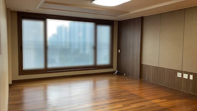 기존 거실은 나무 몰딩으로 둘러싼 새시와 우드 마감재가 있었어요. 그리고 애매한 우물천장과 튀어나온 벽들도 있었답니다.