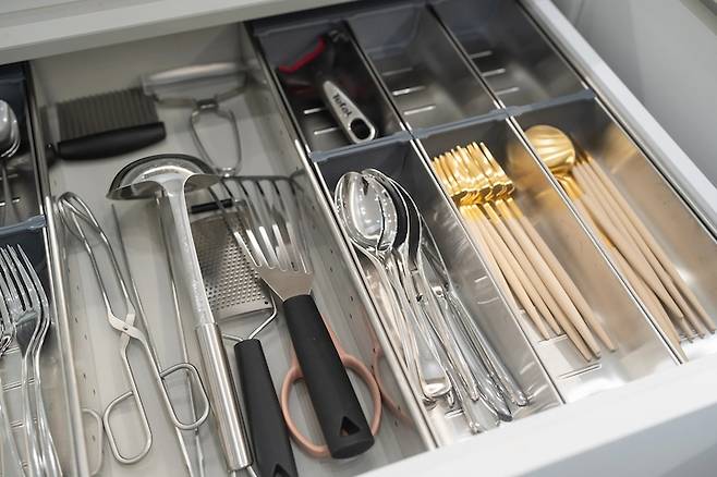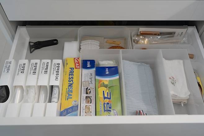 수저함 아래에는 비닐류와 행주 등을 보관해서 자꾸 꺼내쓰고 있답니다.
