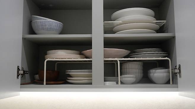 그릇장안에도 자주 사용하는 접시들을 위주로 정리해두었답니다. 그릇은 광주요 백합 시리즈, 빌레로이앤보흐, 카네수즈를 주로 사용하고 있어요!