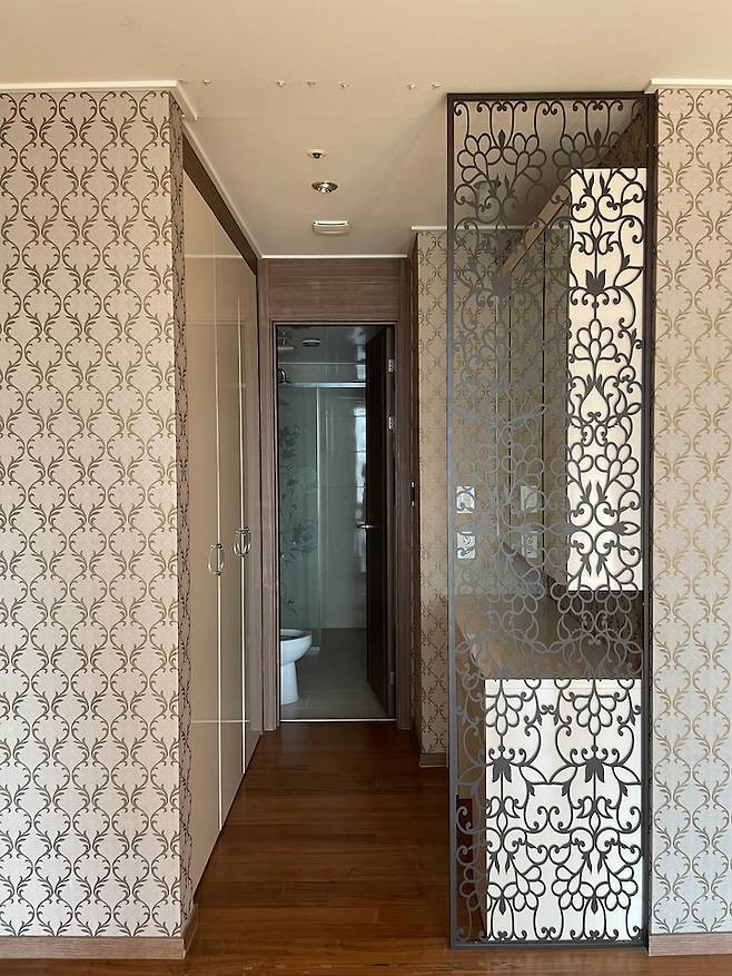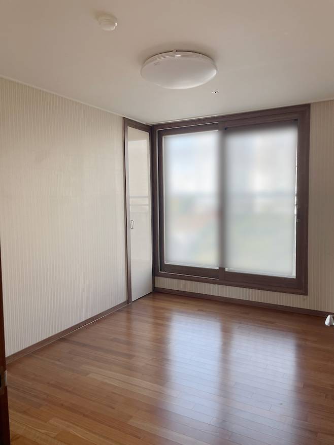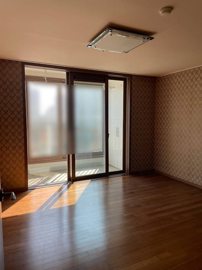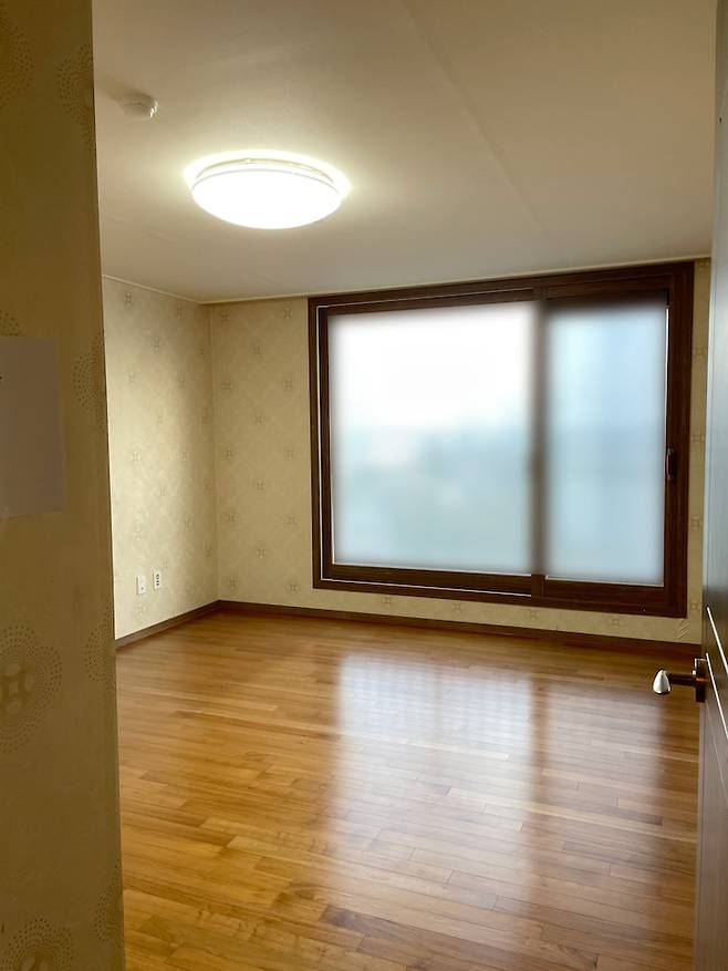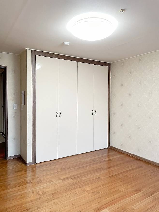 안방은 침실 공간과 베란다, 파우더 공간이 있어요. 촌스러운 벽지를 보고 경악했던 그때가 떠오르네요.