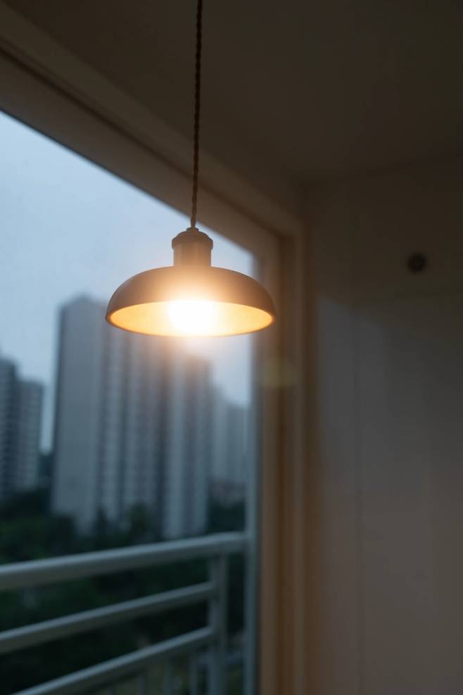 베란다에는 예쁜 나무 등을 달았어요. 유행타지 않으면서 오랫동안 예쁘게 볼 수 있는 등을 찾았는데, 베란다의 분위기와도 잘 어울리고 마음에 들어요.
