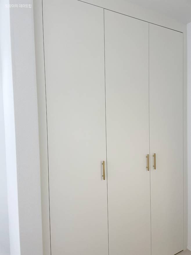 화장대 맞은편에 있던 붙박이장은 철거하지 않고 필름작업으로 리폼을 했어요.