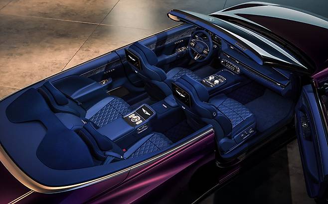 이번 서울모빌리티쇼에서 공개된 엑스 그란 쿠페와 엑스 그란 컨버터블은 기존 G90의 디자인 언어를 바탕으로 2도어 플래그십이라는 새로운 시도를 통해 제네시스의 또 다른 가능성을 탐색한다. 낮게 깔린 루프라인, 프레임리스 도어, 크레스트 그릴과 두 줄 그래픽, 그리고 유려한 실루엣 등은 기존 세단과는 차별화된 조형미를 구현하며, 컨버터블 모델은 리어 라인을 극적으로 연장해 고유의 비례감을 살렸다.