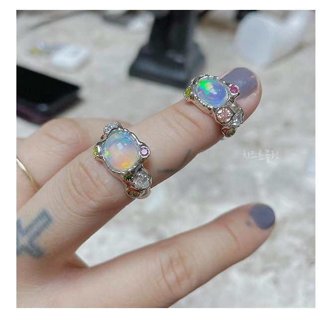 50%를 써서 만든 딜리젬스의 오팔 커스텀 웨딩 반지였답니다.