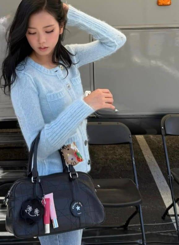 그녀의 데일리룩에서 자주 발견되는 것이 있다면 바로 키링이 주렁주렁 달린 가방입니다. 지수가 하는 가방 꾸미기, 일명 '가꾸'는 많은 팬들의 관심을 받고 있죠.