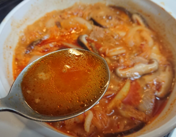 오래 끓일수록 목살과 김치의 조화가 진해진다