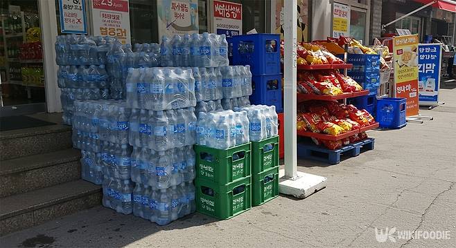 편의점 앞 진열된 생수, 그냥 지나쳐야