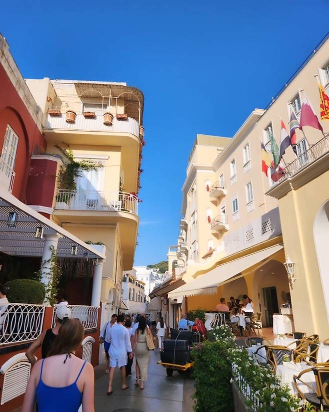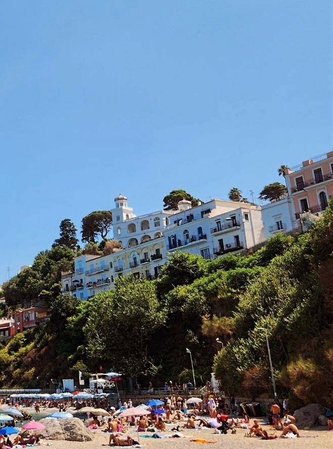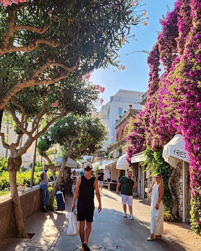 김지호는 30일 자신의 채널에 “Capri, Italy, 카프리섬, 비치, 아름다운 지중해섬”이라는 글과 함께 가족 여행 사진을 게재했다.