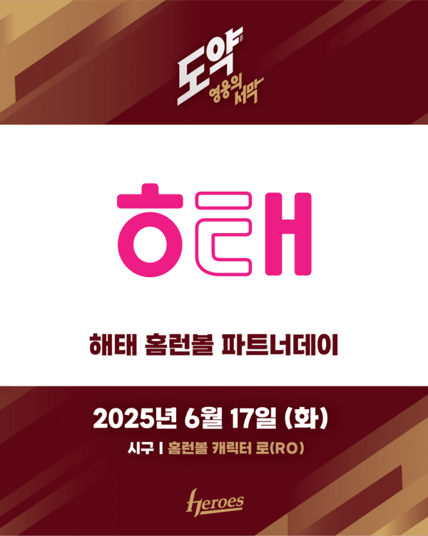 경기 중에는 '홈런볼 굴리기' 등 다양한 이닝 이벤트를 진행해 해태 과자박스와 홈런볼을 증정한다.