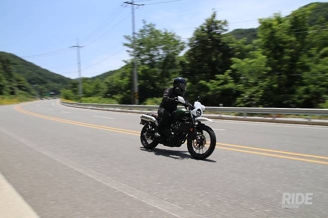 직선에서는 규정속도 이상의 속력을 내기에도 문제없고, 오르막 와인딩에서도 변속만 적절히 해주면 스포티한 주행을 즐길 만한 속력을 내기에도 충분한 실력이다. 여기에 혼다 특유의 차체 밸런스 덕분에 차량의 움직임을 이해하기 쉽다. 너무 예민하거나 너무 둔하지 않은, 정확하게 중간 정도에 위치한 밸런스는 예상대로 움직여주기 때문에 코너에서 라인을 머릿속으로 그리면 정확하게 그 라인을 따라갈 수 있다. 서스펜션도 운동성에 초점을 맞춘 것이 아닌, 안정성과 충격 흡수에 초점을 맞춘 앞 정방향 텔레스코픽 포크, 뒤 듀얼 쇼크 업소버 구성인데도 이 정도의 움직임을 보여줄 수 있다는 점이 놀라울 뿐이다.