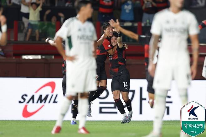 포항은 24일 포항스틸야드에서 열린 하나은행 K리그1 2025 27라운드 홈 경기에서 전북을 3-1로 이겼다.