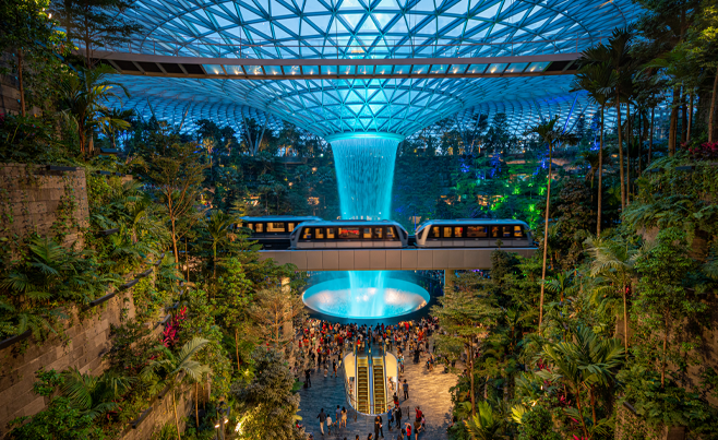 실내 숲길을 따라 더 깊숙이 들어가면 전세계에서 가장 큰 실내 폭포인 ‘Rain Vortex’가 위용을 드러낸다. 40미터 높이의 폭포를 중심으로 조성된 산책로를 걷기만 해도 저절로 치유되는 느낌. 다양한 즐길 거리와 명소, 숍 구경까지 하다 보면 반나절쯤은 금방이다.