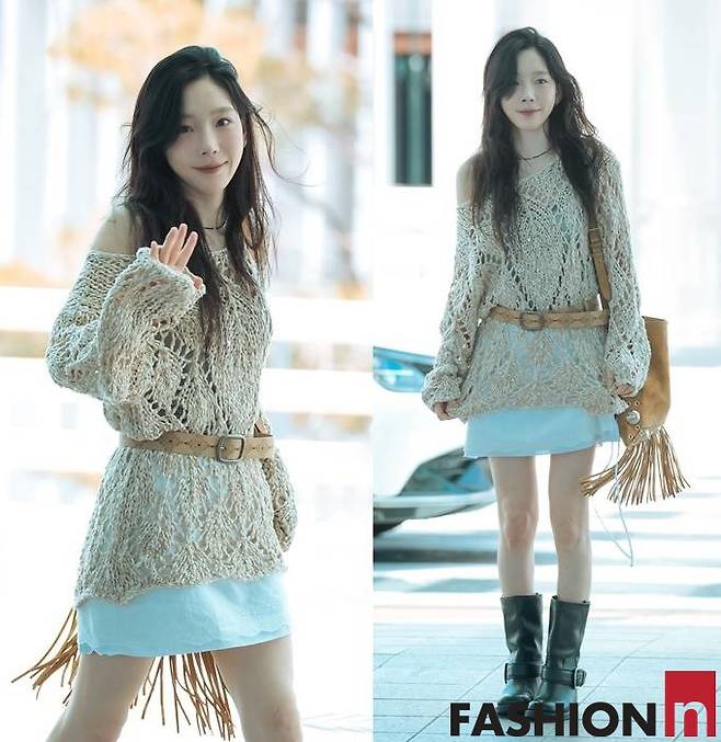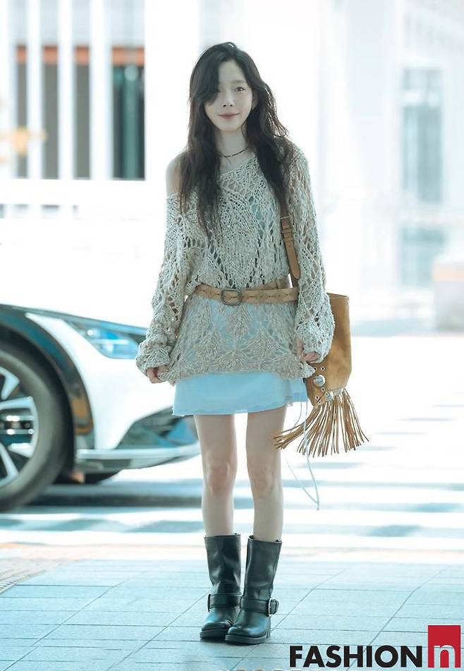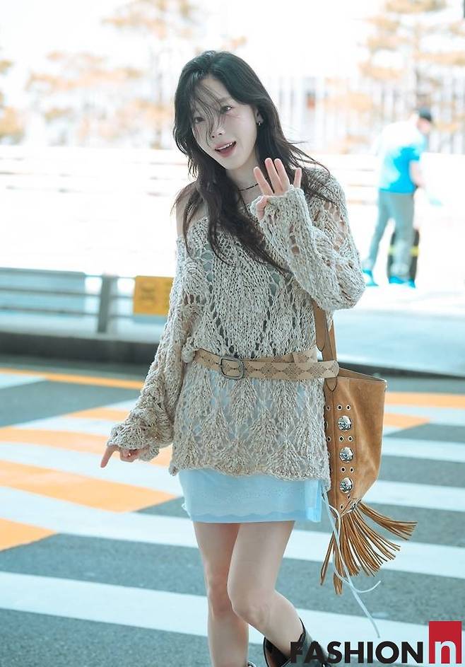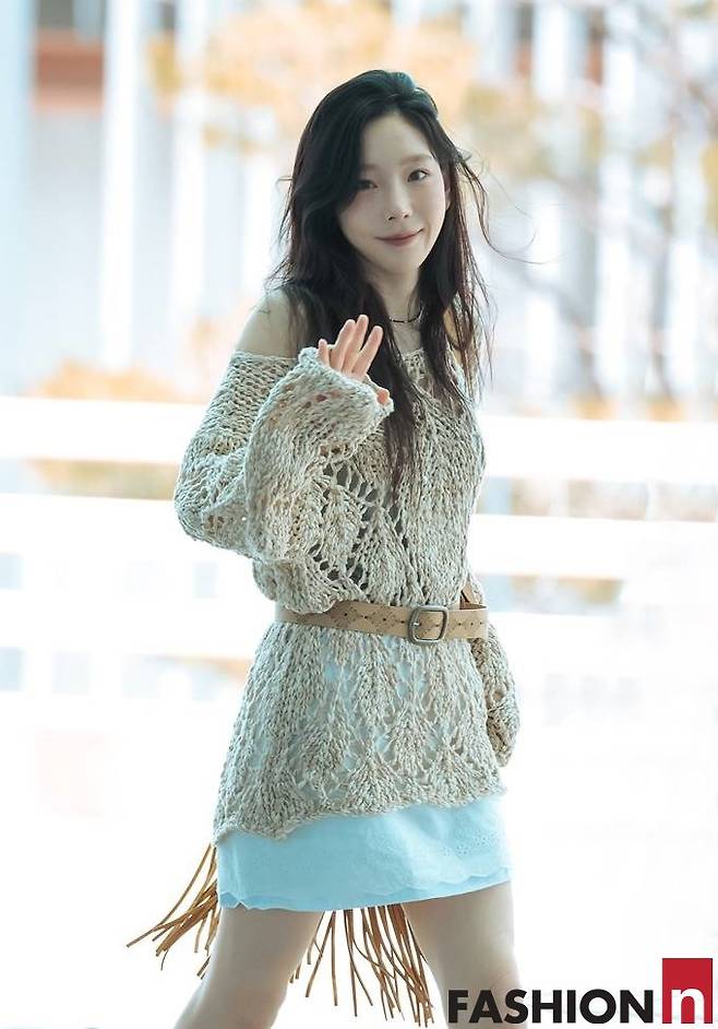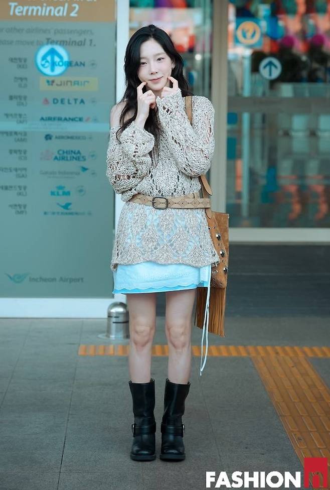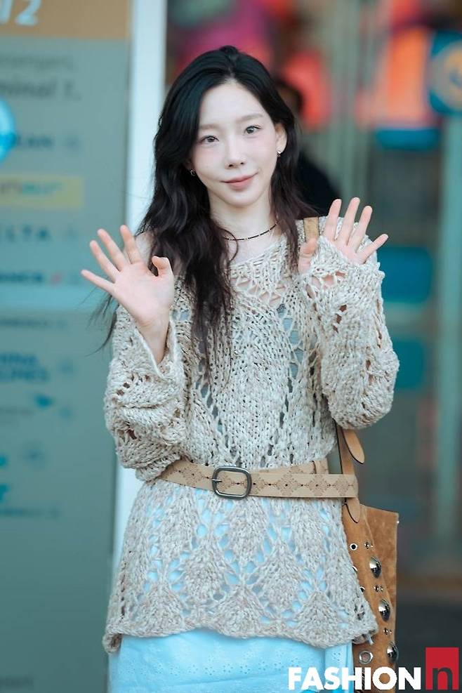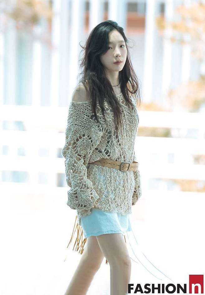 소녀시대 태연이 보헤미안 크로셰 니트룩으로 공항을 사로잡았다.