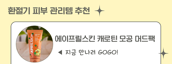 환절기 피부 극약처방 화장품 추천 첫 번째 아이템은 바로 모공 속 노폐물을 깨끗하게 제거하는 데에 탁월한 에이프릴스킨 당근 모공 머드팩!