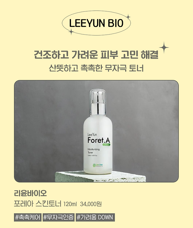 그래서 에디터는 수분감이 많으면서 민감성, 여드름성 피부에도 자극 없이 사용할 수 있는 순한 제품을 사용해!