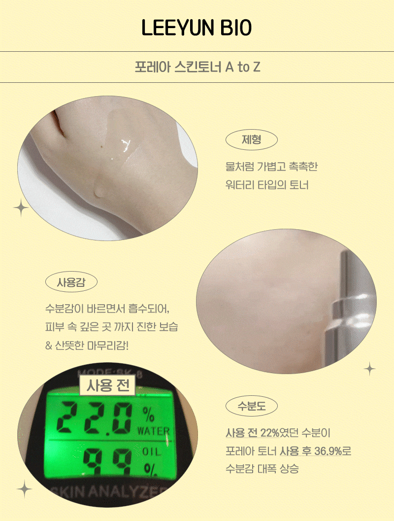 포레아 스킨토너는 물처럼 가볍고 촉촉한 워터리 타입의 토너이지만 그렇다고 너무 가볍지만은 않더라고?