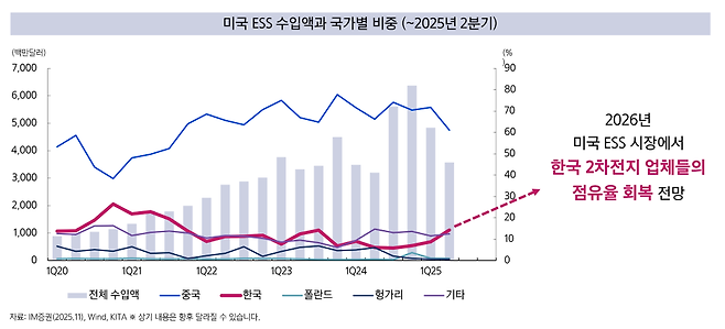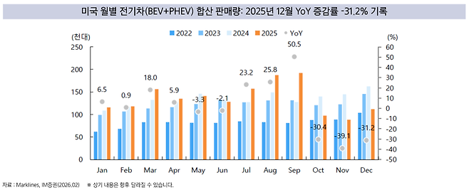 김 팀장은 “올해 미국 전기차(EV)도 두 자릿수 역성장이 불가피하다”고 봤다. 미국 전기차 시장은 세액공제 종료 이후 월별 판매가 전년 대비 30% 이상 감소한 달도 나왔다. 이에 비해 에너지저장장치(ESS)는 데이터센터 증설과 맞물려 성장세다. LG에너지솔루션·삼성SDI 등은 EV 부진을 ESS로 일부 상쇄 중이지만, 가동률·수익성 회복엔 시간이 필요하다는 진단이다. 그는 “미국 ESS 매출 비중이 높은 업체, 특수변압기·전력기자재 등 ESS 특화 기업이 상대적으로 유리하다”고 조언했다.