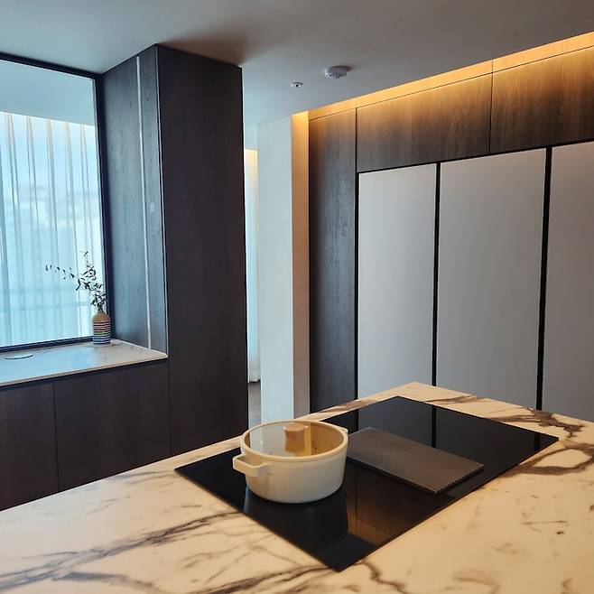 인덕션은 엘리카의 후드 일체형 인덕션으로 선택해서 후드가 천장을 막지 않아 개방감이 느껴지는 공간을 만들 수 있었어요.