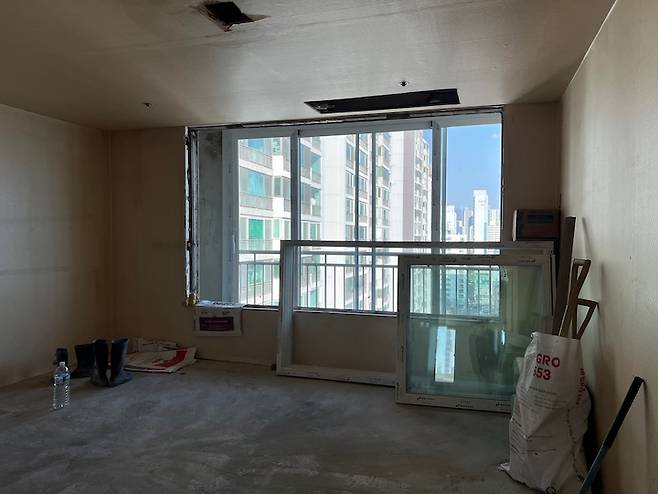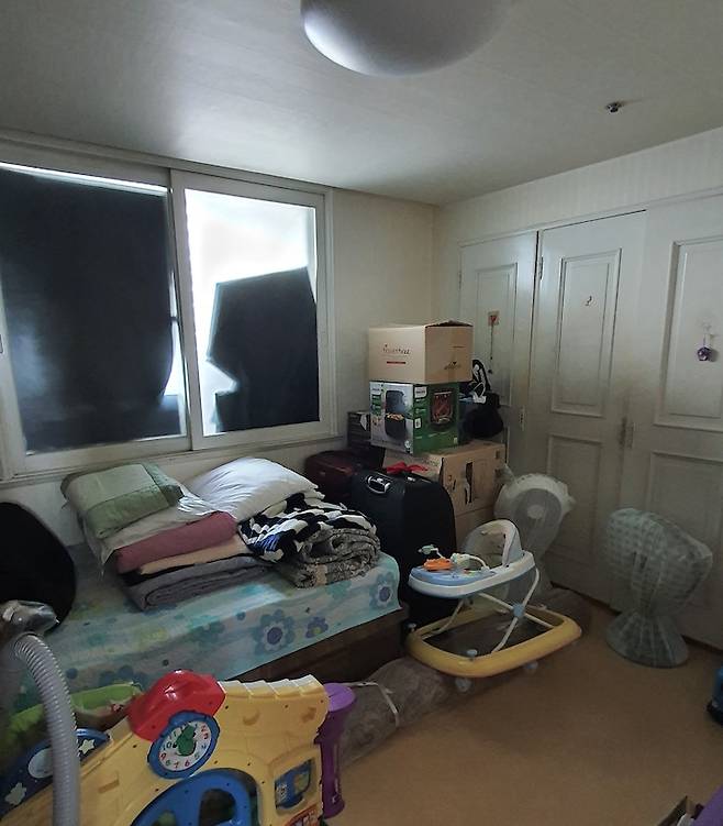 기존 안방 맞은편 방이에요. 측면의 붙박이장을 철거하여 공간을 넓게 만들었어요.
