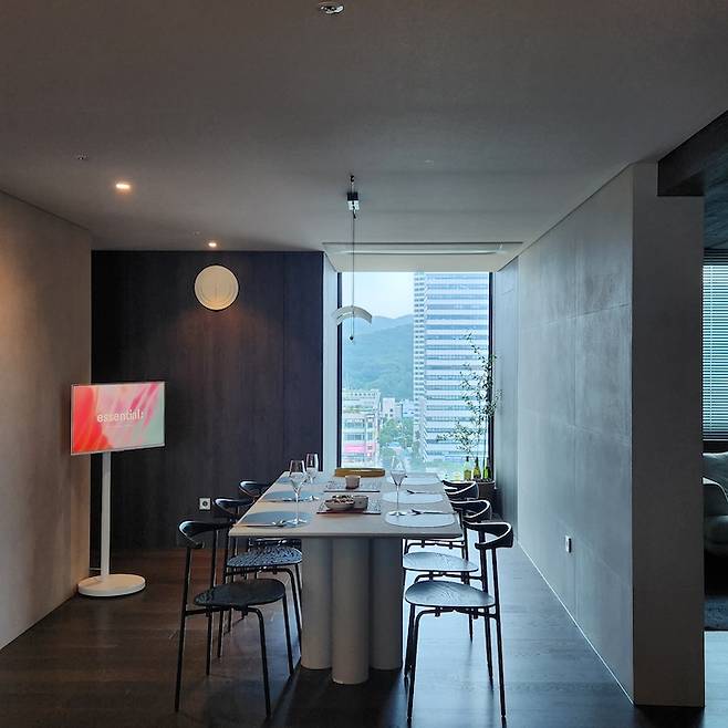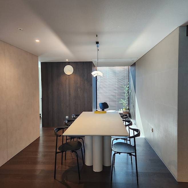 가족과의 시간을 소중히 여기고 맛있는 요리를 먹으며 예능 프로 보는 것을 즐기는 우리 부부의 라이프스타일에 맞추어 거실을 다이닝룸으로 만들었어요. 그리고 다이닝룸 가운데 큰 식탁을 두기로 했어요.