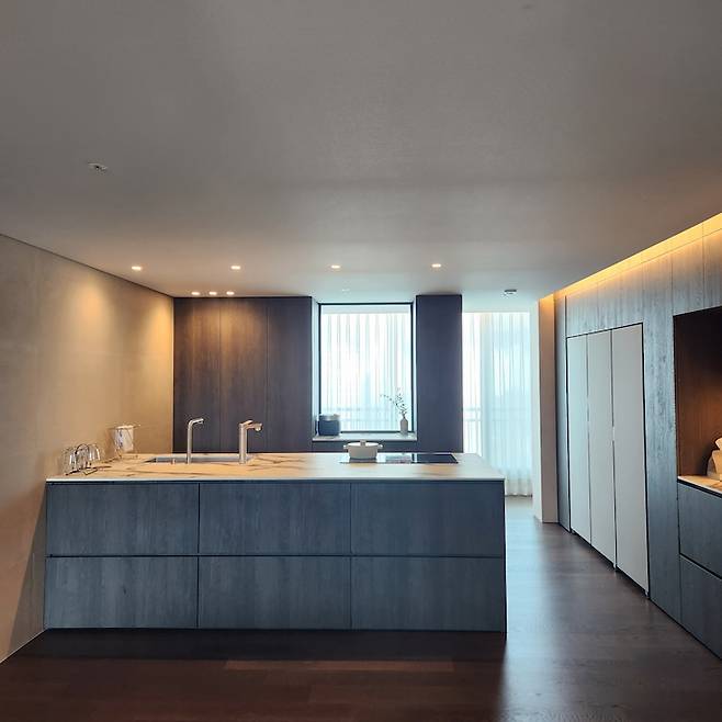 저희 집 주방 상판은 세라믹이 아닌 메라톤 지재예요. 자칫 밋밋해 보일 수 있었던 집에 포인트가 되어 너무 만족스러워요.
