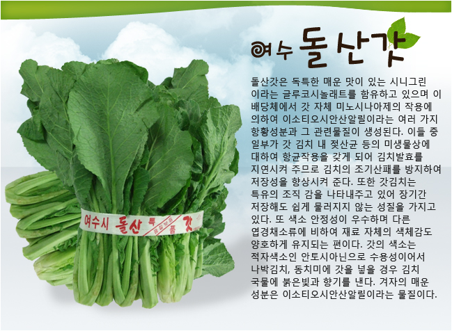 여수에는 봄이 되면 가장 먼저 찾아오는 특별한 작물이 있어요. 바로 돌산 갓이에요. 여수 돌산 갓은 해풍이 불어오는 해양성 기후에서 자라, 일반 갓보다 향이 훨씬 진하고 아삭한 식감도 남달라요. 그래서 봄마다 갓김치 주문이 폭주하는 이유가 여기에 있죠. 제철 갓은 신선함과 향긋한 매운맛이 별미에요.