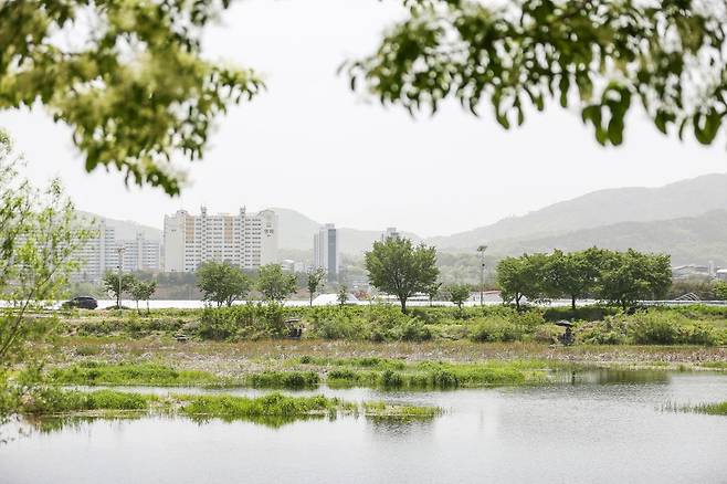 이팝나무길 바로 옆으로는 진천의 젖줄인 백곡천이 유유히 흐릅니다. 하얀 이팝나무 꽃 아래로 노란 애기똥풀이 고개를 내밀고, 강가에서는 파라솔을 펴고 낚시를 즐기는 강태공들과 한가롭게 깃털을 정리하는 오리들의 모습이 어우러져 한 폭의 평화로운 수채화를 완성합니다.