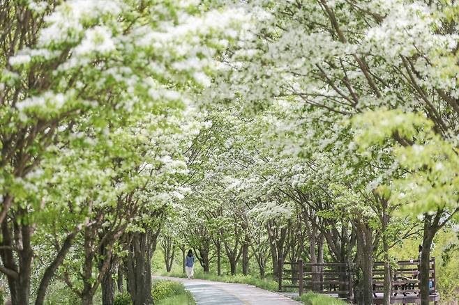 준비물: 3km에 달하는 긴 평지 산책로이므로 편안한 신발은 필수입니다. 5월의 햇살이 강할 수 있으니 가벼운 양산이나 모자를 챙겨 하얀 꽃 터널의 그늘을 만끽해 보세요.