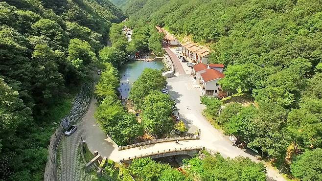이곳은 해발 654m의 백암산과 759m의 선야봉 사이에 형성된 골짜기를 중심으로 조성됐다. 두 산이 감싸 안은 형태 덕분에 바람과 소음이 완충되고, 숲의 정취가 더욱 또렷하게 느껴진다.