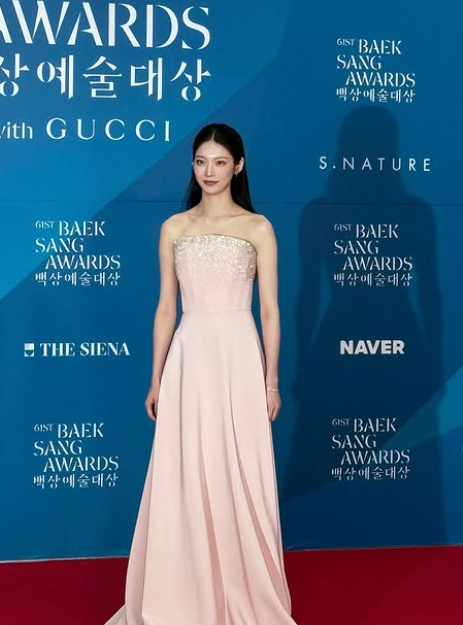 공승연은 긴 생머리를 반듯하게 넘기고, 최대한 깔끔하게 연출한 헤어스타일은 드레스의 세련된 무드와 딱 어울렸죠. 메이크업은 과하지 않게 맑고 투명한 느낌으로 마무리했어요.