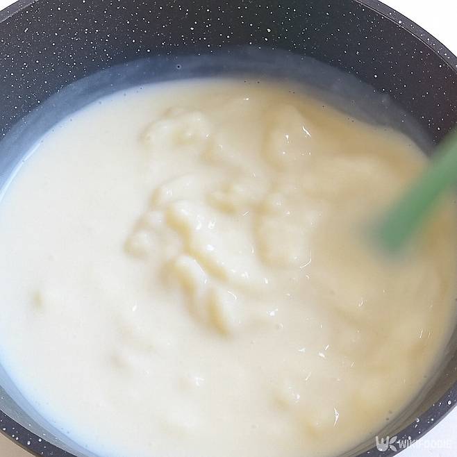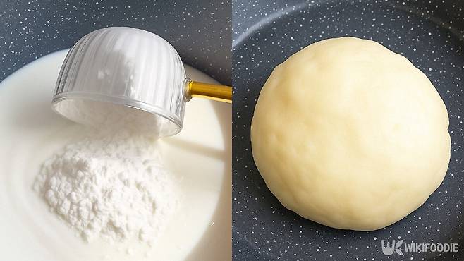 우선 팬에 우유를 붓고 찹쌀가루와 옥수수 전분, 설탕, 소금을 넣어 고루 섞는다. 약불에서 천천히 저어가며 데우면 반죽이 점점 걸쭉해지다가 하나로 뭉쳐진다. 이때 불 조절이 중요하다. 센 불에서는 쉽게 타기 때문에 반드시 약한 불에서 천천히 익혀야 한다.