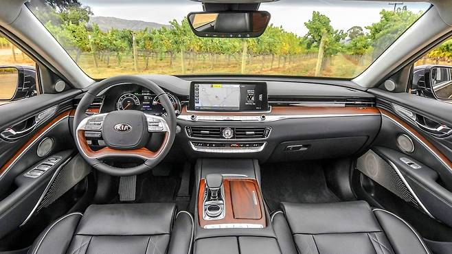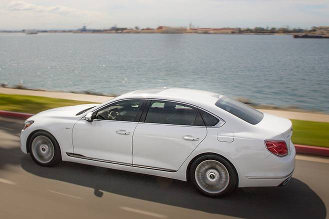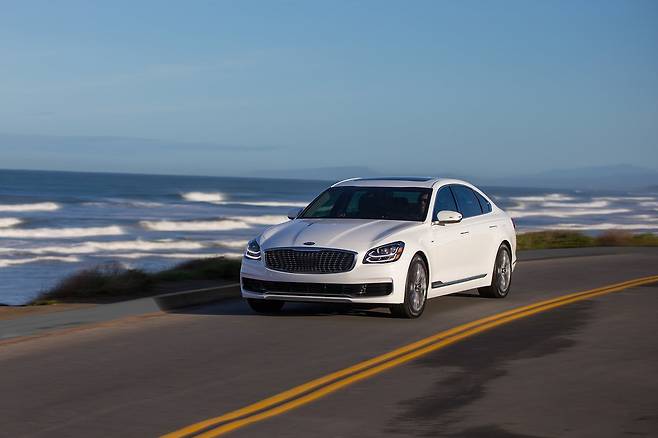 차체 크기는 전장 5,120mm(더 뉴 K9 이후 5,140mm), 전폭 1,915mm, 전고 1,490mm, 휠베이스 3,105mm로, 넉넉한 실내 공간과 안정적인 승차감을 제공합니다. 이러한 제원은 장거리 운전이나 비즈니스 용도로도 손색없는 편안함을 선사합니다.