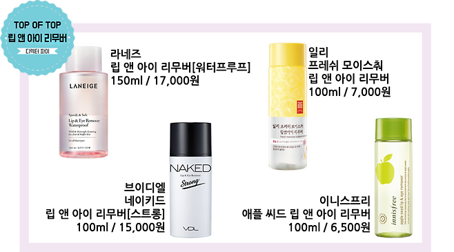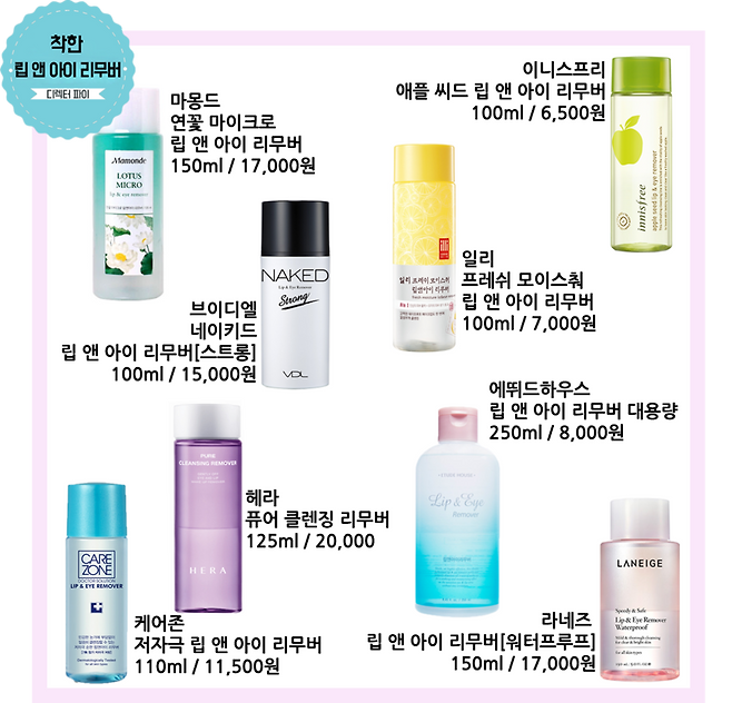 이번에는 립앤아이리무버, 클렌징워터, 클렌징오일 편이야.