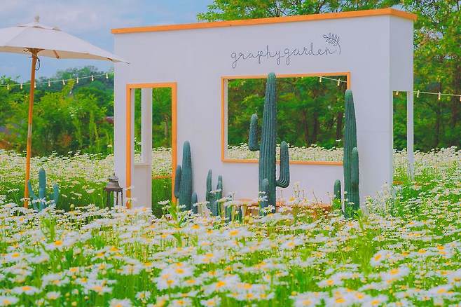 카페 곳곳에는 핑크 하우스, 감성적인 온실, 조형물 등 포토스팟이 가득해 대충 찍어도 작품이 나올 것입니다. 데이지 외에도 마가렛, 수국, 네오필라, 백일홍, 가우라 등 다채로운 봄꽃을 만나보고 싶다면 꼭 방문해 보세요.
