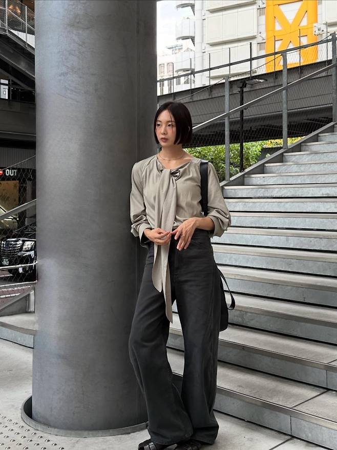 비슷한 분위기를 연출하고 싶다면 첫째, 블라우스는 목선 디테일이나 긴 타이 장식이 들어간 디자인을 선택해 단순한 셔츠와 차별화를 주는 것이 좋다. 둘째, 팬츠는 다크 톤 와이드 핏을 매치해 다리 라인을 곧게 뻗어 보이게 하고, 스니커즈나 샌들과 매치하면 데일리 무드로 소화할 수 있다. 셋째, 액세서리는 최소화해 미니멀 감성을 유지하는 것이 핵심이다.