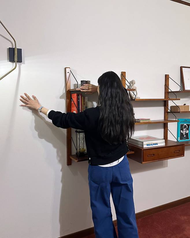이청아는 지적인 무드가 가득한 서재를 배경으로 위트 있는 포즈를 선보이며 본인만의 독보적인 패션 감각을 뽐내고 있어요.