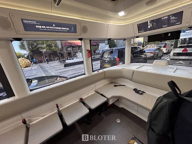 27일 서울 청계광장 일대에서 일반 승객들과 함께 로이를 탑승했다. 탑승 가능 인원은 안전 담당자를 포함해 모두 9명이며, 승객이 모두 안전벨트를 매야 운행이 가능하도록 설계됐다.