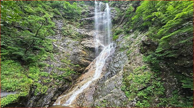 강촌 여행 중 자연의 시원한 숨결을 느끼고 싶다면, 구곡폭포의 아홉 굽이 물길 따라 천천히 걸어보세요.