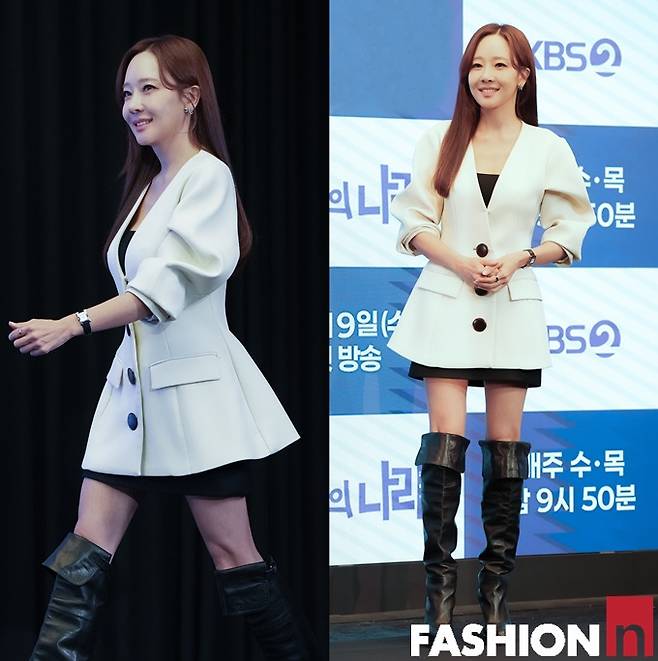 배우 소유진이 재킷 커리우먼룩으로 당당한 지적 카리스마를 발산했다.