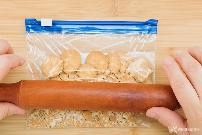 4. 계란과자 5개를 잘게 부수어 넣는다.