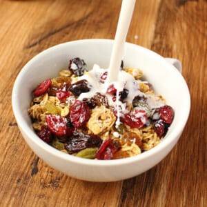 ‘통곡물’이라는 단어 때문에 건강하다고 오해하는 분들이 많지만 그래놀라는 설탕, 올리고당, 식물성 기름으로 덩어리 형태를 만들기 때문에 당지수가 높고 칼로리도 상당히 높은 제품입니다.