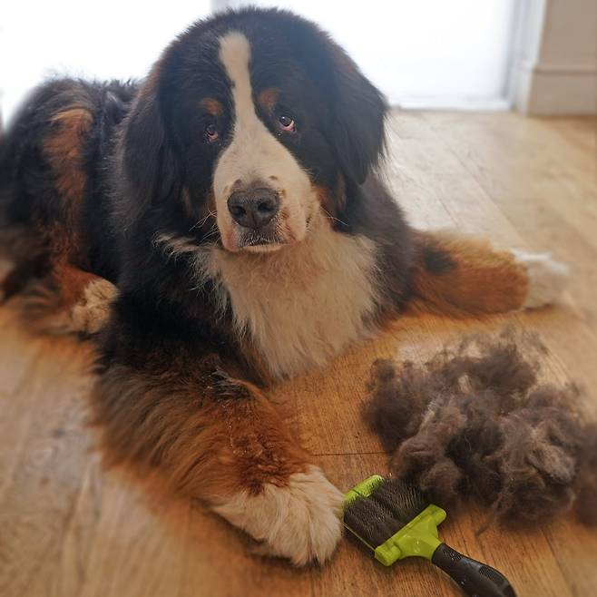 버니즈 마운틴 독은 중간 길이의 이중모를 가지고 있어요. 털이 아주 빽빽해서 추운 스위스 산맥의 날씨를 버틸 수 있었어요. 단, 더위에는 매우 약한 편입니다.