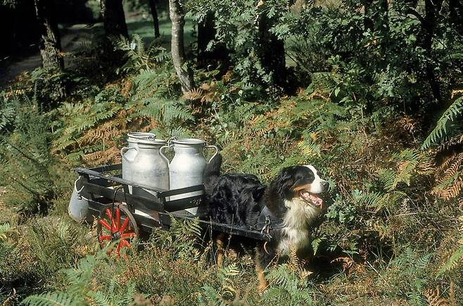 버니즈 마운틴 독은 덩치도 크고 온몸이 근육질로 되어 있어 힘이 아주 세요. 농장에서 우유, 치즈 등을 수레에 실어 옮기는 역할을 했습니다. 그중에서도 힘이 아주 센 버니즈 마운틴 독은 자동차 한 대를 끌 수 있는 정도의 힘을 가지고 있다고 알려져 있어요.