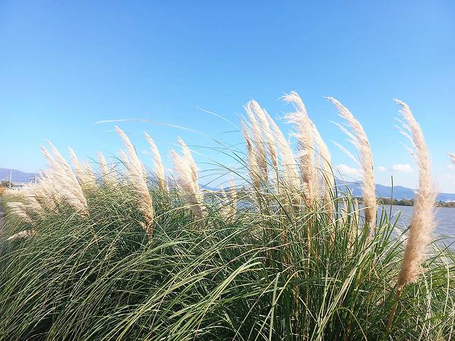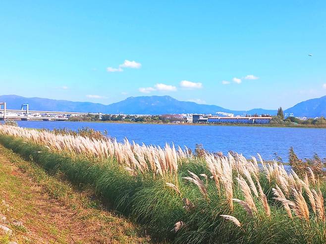 사람 키보다 훌쩍 큰 팜파스는 부드러운 깃털 같은 꽃이삭으로 이국적인 분위기를 자아낸다. 특히 바람이 불 때마다 일렁이는 모습은 가을 강변의 고즈넉한 정취와 어우러져 한 폭의 풍경화를 보는 듯하다. 부산 근교임에도 주말에도 크게 붐비지 않아, 한적하게 즐기고 싶은 이들에게는 더욱 매력적인 명소다.