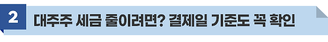 예를 들어 12월 결산법인일 경우 12월 말에 보유한 수량이 지분율과 금액 기준을 모두 충족해야 하므로 매도에 따른 체결이 아니라 결제가 12월 말일 전에 일어나야 합니다.