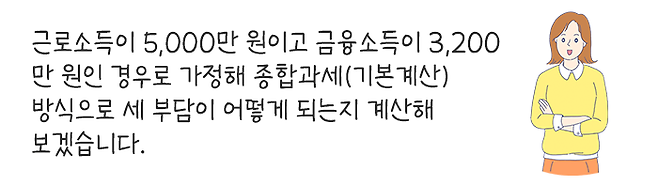 사실 다른 종합소득이 없다면 금융소득종합과세가 된다고 해서 세 부담이 크게 증가하는 것은 아닙니다.